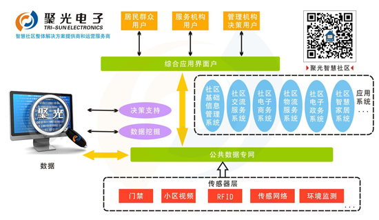 智慧社區(qū)的基本組成包括傳感器層、公共數(shù)據(jù)專網(wǎng)、應(yīng)用系統(tǒng)、綜合應(yīng)用界面和數(shù)據(jù)庫(kù)。
