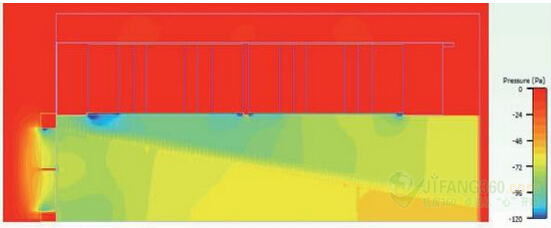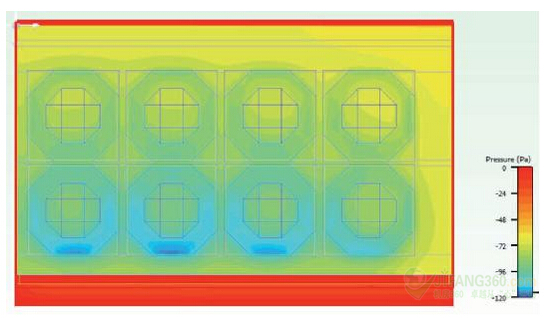 圖4:風扇進氣口的靜態壓力(0.2立方米/秒)。