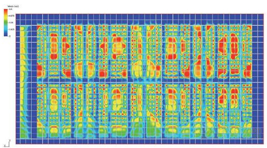 在創建一個組件,使每個插槽的氣流均勻統一之前,我們決定看看仿真模擬空氣流量,而不考慮漩渦。我們觀察到在遠離風扇75毫米的一定距離,速度變化仍然非常重要(圖8)。