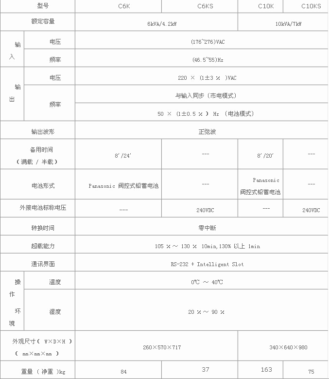 零轉換時間 當市電停電或復電時,UPS 在市電模式與電池模式之間的切換是完全沒有轉換時間的,有效保證了負載運行的可靠性。